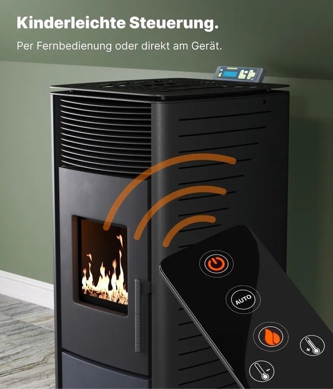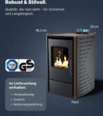 Der Nemaxx P6 Pelletofen verbindet modernes Design mit hoher Effizienz und intelligenter Technologie. Mit seinem kompakten Format und der eleganten Farbgebung in Anthrazit/Schwarz passt er sich nahtlos jedem Wohnambiente an.